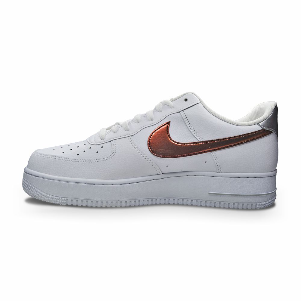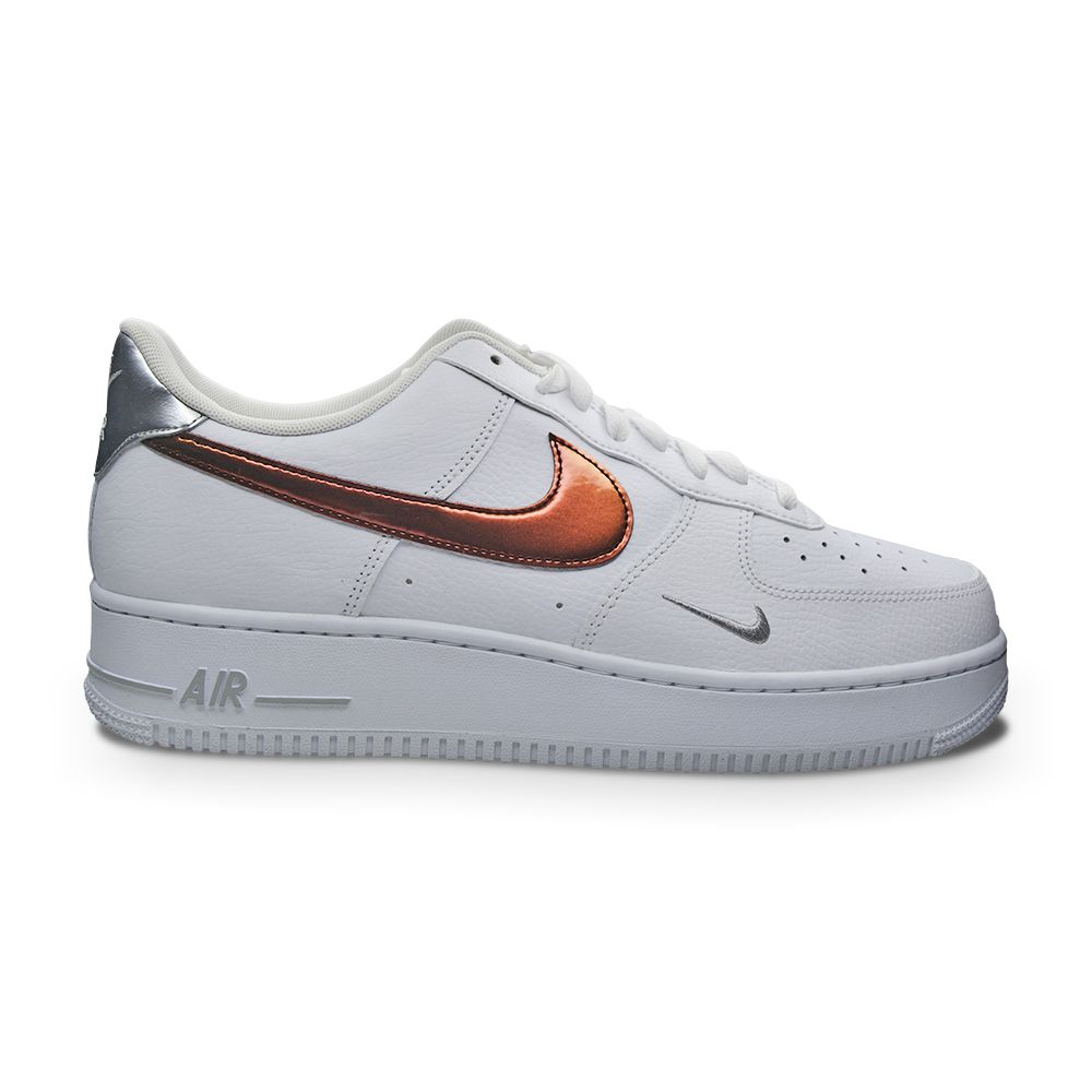 This Nike Air Force 1 Low comes highlighted with White leather on the base, liner, laces, and rubber outsole. Next, the two tone red brown for the Swooshes. Grey on the sole. Lastly, White drapes the nylon tongues and midsole. AF1 are a summer must have for every wardrobe! Get a clean pair now.