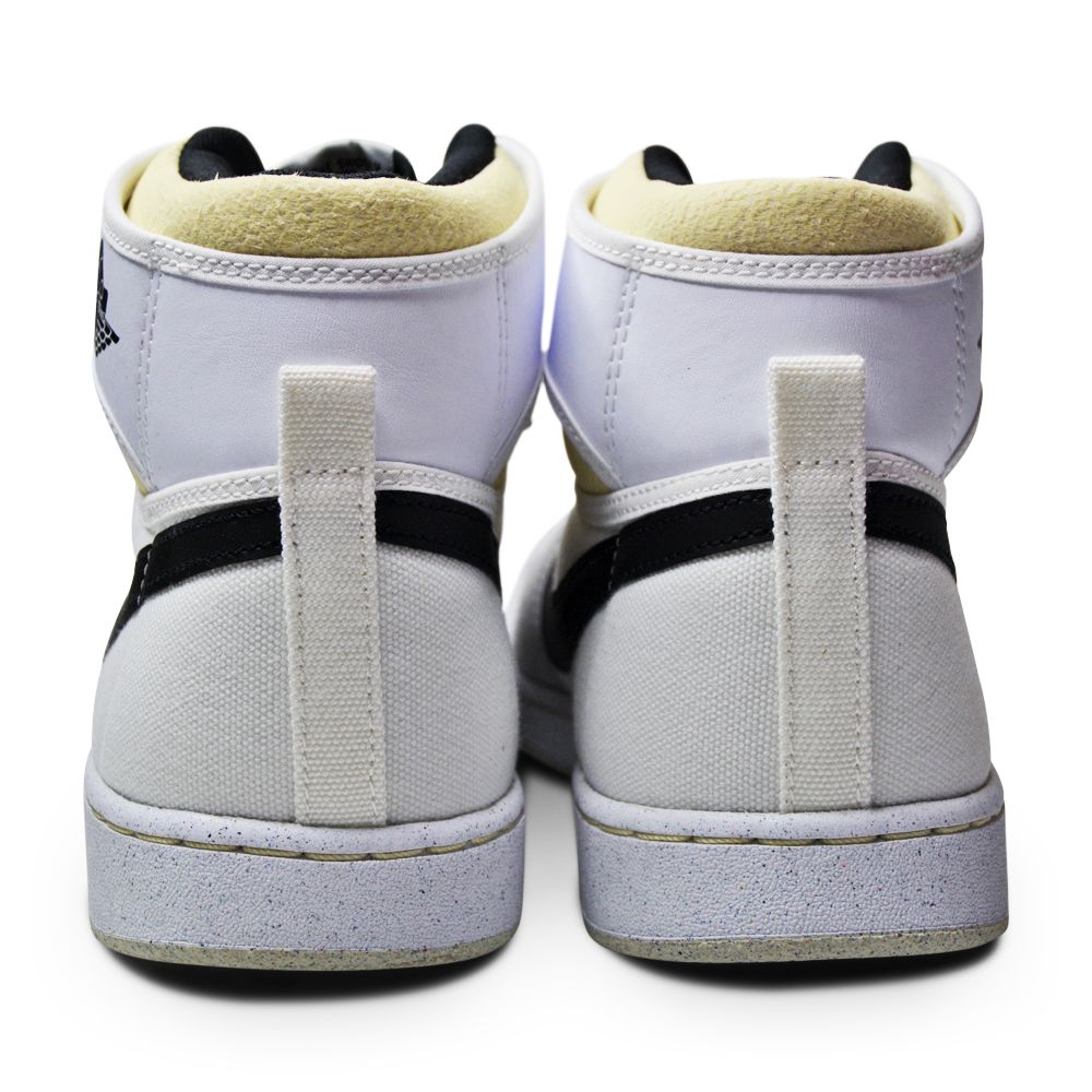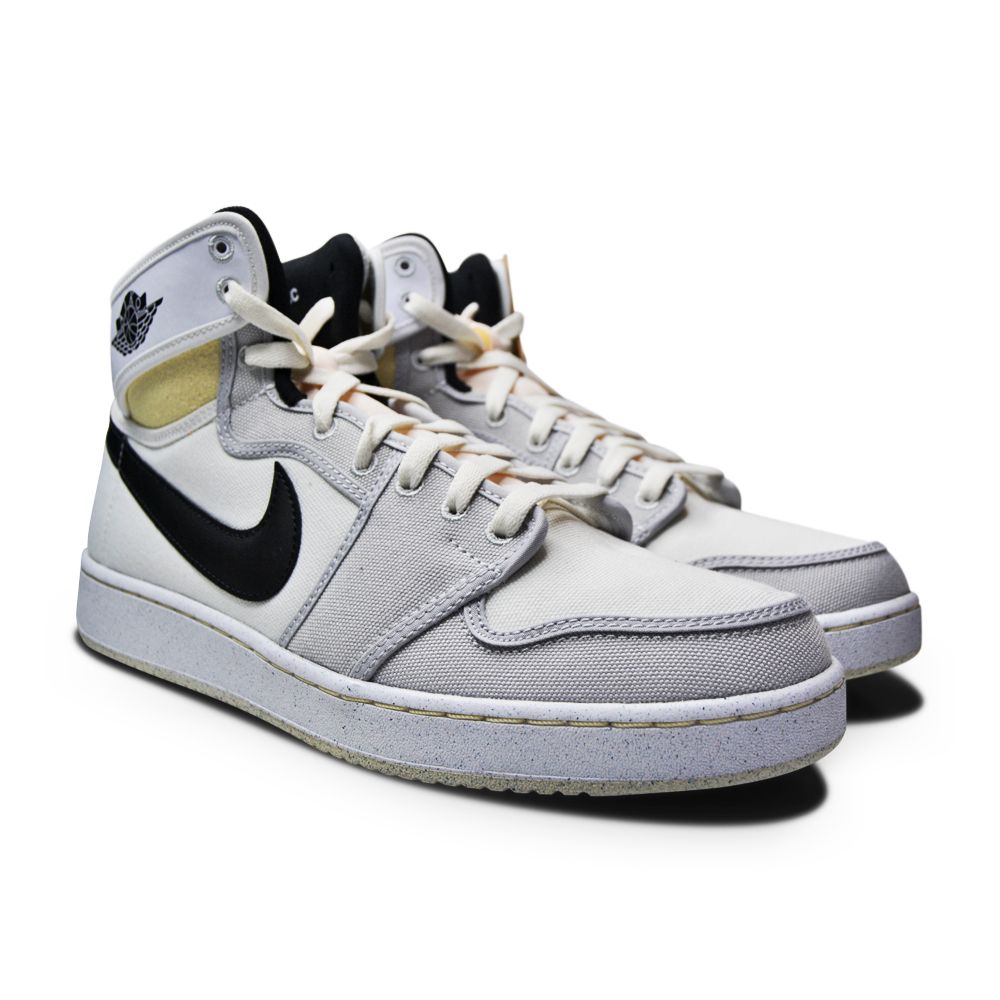 This shoe comes in a White Black Grey Fog Sail colorway. The bulk of the pair’s upper is clad in the two most former of the aforementioned tones, while profile swooshes, “AJKO” branding on the lateral ankle flap and detailing at and around the top of the tongue deviate in stark black contrast. Collar areas and Nike Dunk-reminiscent traction introduce an “aged” look into the mix, which has become popular among sneaker customisers over the last two years. Together, each component helps expand the already expansive design roster of the Air Jordan 1.