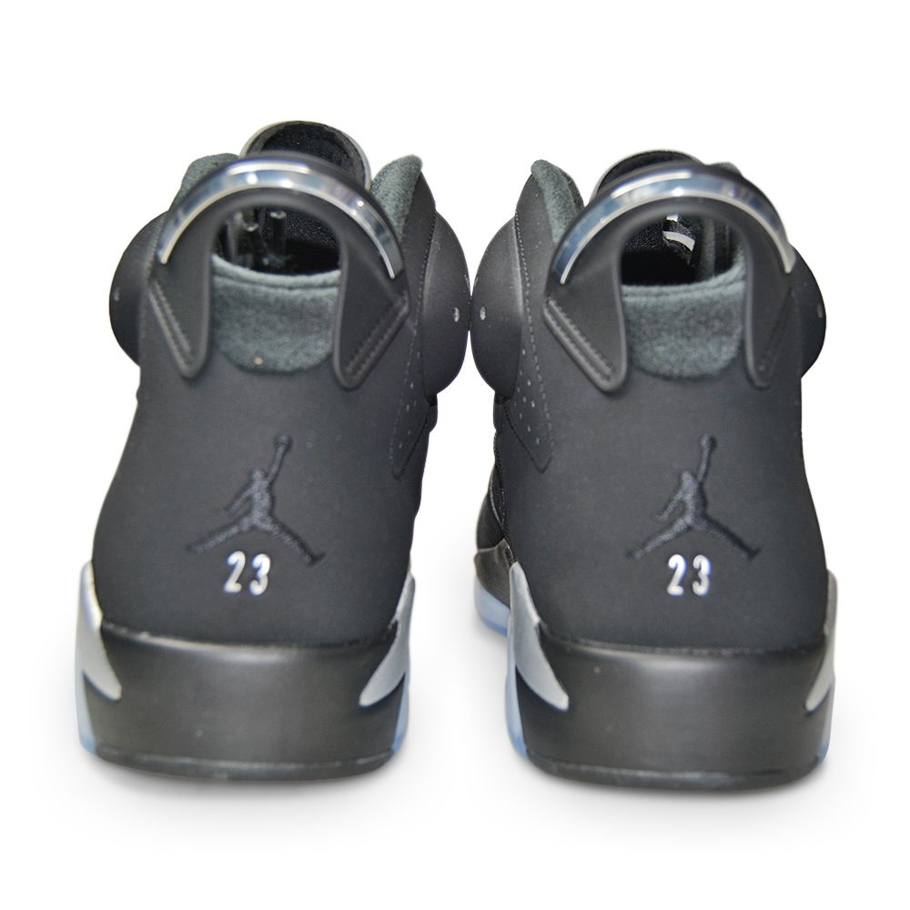 the Air Jordan 6 “Black/Metallic Silver” is almost entirely blacked out. Dark nubuck constructs much of the shoe, building out its various overlays and unders. The adjacent fixtures — the midsole, lace shield, pull-tab, etc — are also colored similarly, further contrasting the icy soles underfoot and the pops of “Metallic Silver” throughout.