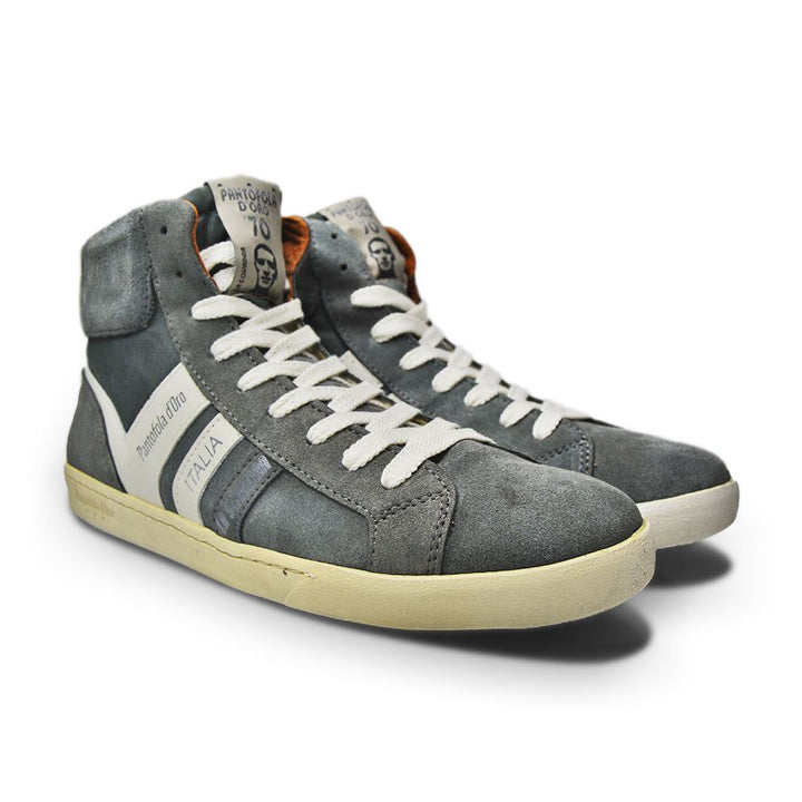 The Mens Pantofola d'Oro Livigno Mid Grey Shadow is an efficient, premium-crafted sneaker. Features include a supportive ankle cuff and a cushioned midsole to provide superior comfort and support. This sneaker is a luxuriously lightweight choice that won't compromise on performance.