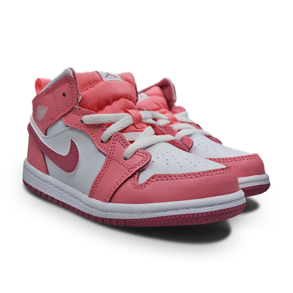 Kids Nike Jordan 1 Mid (PS) - DQ8424 616 - Coral Chalk Desert Berry White